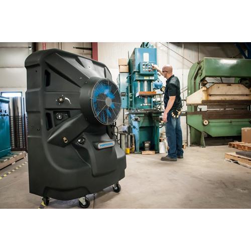 Der BIO-Luftkühler Portacool Jetstream™ 240 sorgt für schnelle Abkühlung, wo Sie es benötigen! Er kann buchstäblich nach dem Befüllen des Wassertankes verwendet werden, da keine zusätzlichen Installationsarbeiten erforderlich sind. Die Funktionsweise basiert auf adiabater Verdunstung, hierbei erfolgt die Kühlung der Umgebungsluft mit Wasser. Der Jetstream™ 240 ist konzipiert für Räume bis 105 m² - beispielsweise in der Industrie, Gewerbe, Fabrik- oder Lagerhallen, Werkstätten, Landwirtschaft oder im Gartenbau. Überall dort, wo eine herkömmliche Klimatisierung nicht praktisch oder zu teuer ist. Der KUUL-Effekt für diesen Jetstream™ beträgt 17. Portacool Jetstream™ 240 Verdunstungskühler ist sehr energieeffizient und einfach zu transportieren. Das Kältemittel in diesem leistungsstarken BIO-Cooler ist Wasser. Der interne Wassertank von 189 Liter kann einfach mit einem Wasserschlauch befüllt werden. Ist der Tank fast leer, dann schaltet sich der Lüftkühler automatisch ab. AirSain - Ihr offizieller Vertriebspartner von PORTACOOL